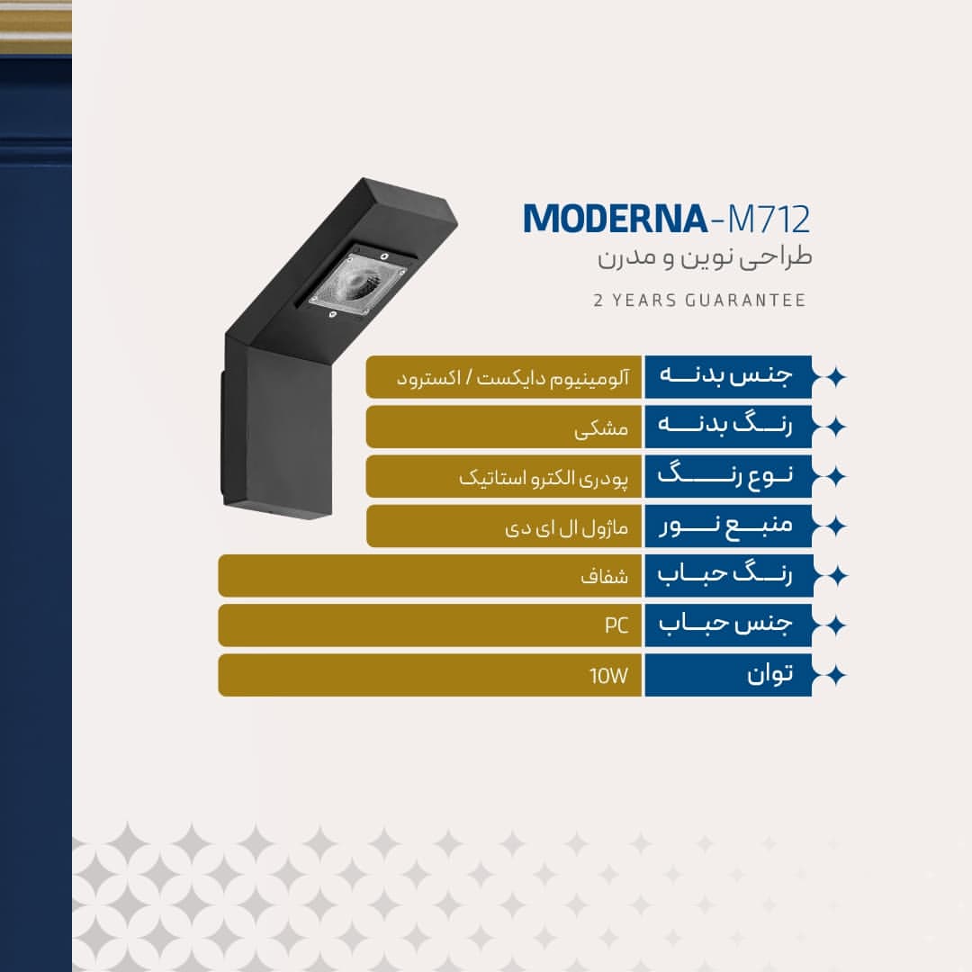 درخشش مدرن برای فضای شما! چراغ دیواری مدرناM712؛ طراحی شیک، نور یکنواخت، مقاوم در برابر آب و گردوغبار. زیبایی که ماندگار است. همین حالا دهید و فضای خود را متحول کنید!